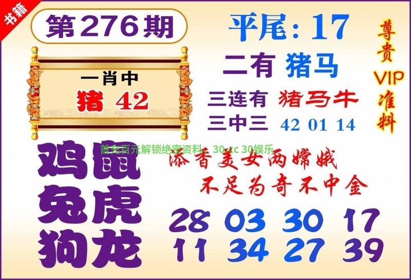 278期:七肖【马牛羊猪猴鸡鼠】开:虎28错 |