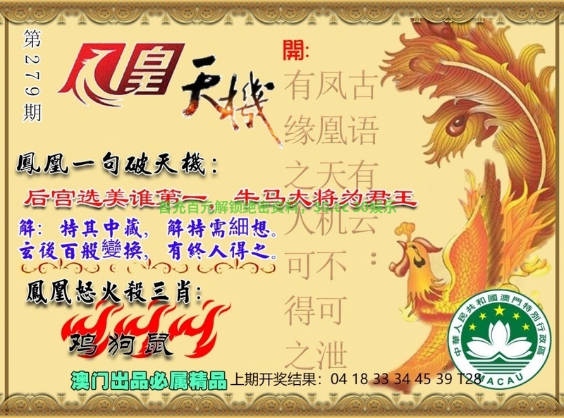 279期:六肖【猪鼠猴马鸡狗】开:兔27错 |