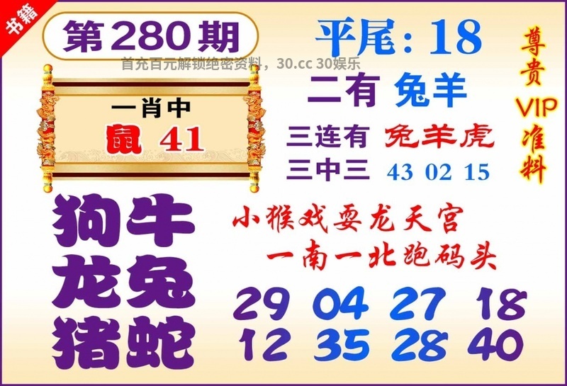 280期:单双【双肖:狗鼠马龙】开:鼠42准 |